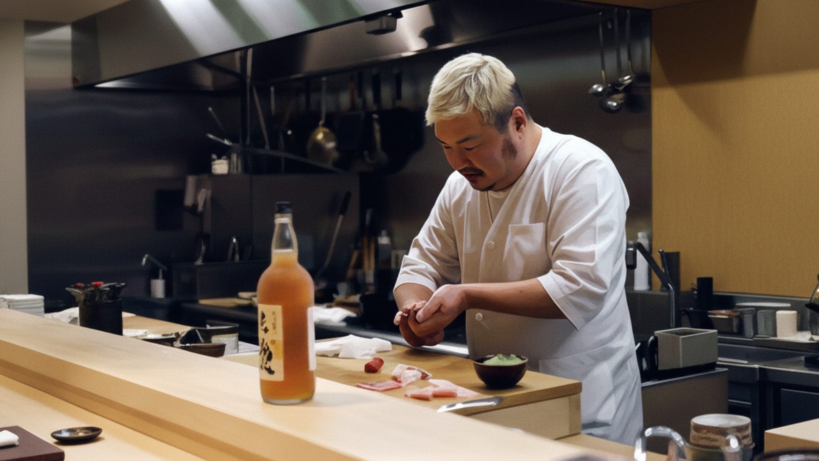 東京、石川の寿司屋をはじめ、居酒屋や老舗おでん屋での修行を重ねてきました。寿し一筋だけでなく、さまざまな現場を経験してきたからこそ、寿しと一品料理、酒肴まで含めた全体の組み立てを大切にしています。派手さはありませんが、仕事は妥協しない。